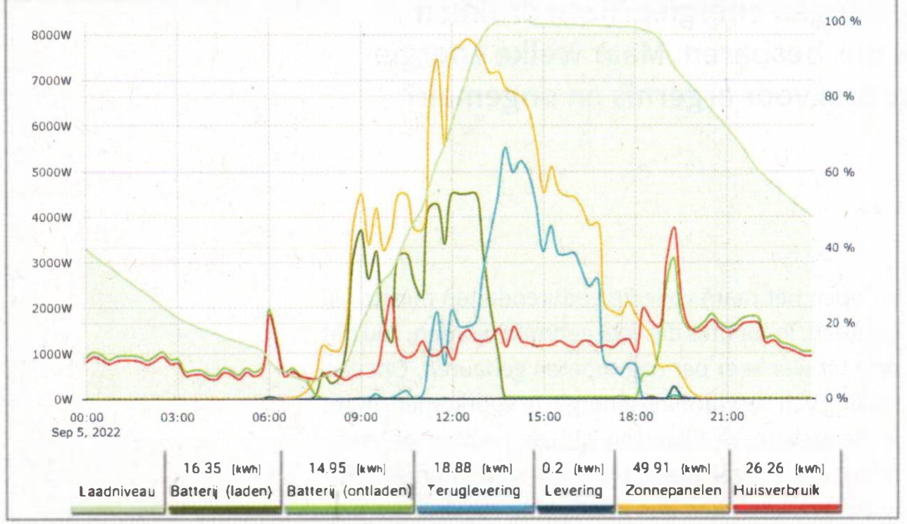Een gemiddeld zonnige septemberdag: ’s nachts en ’s morgens levert de accu energie.