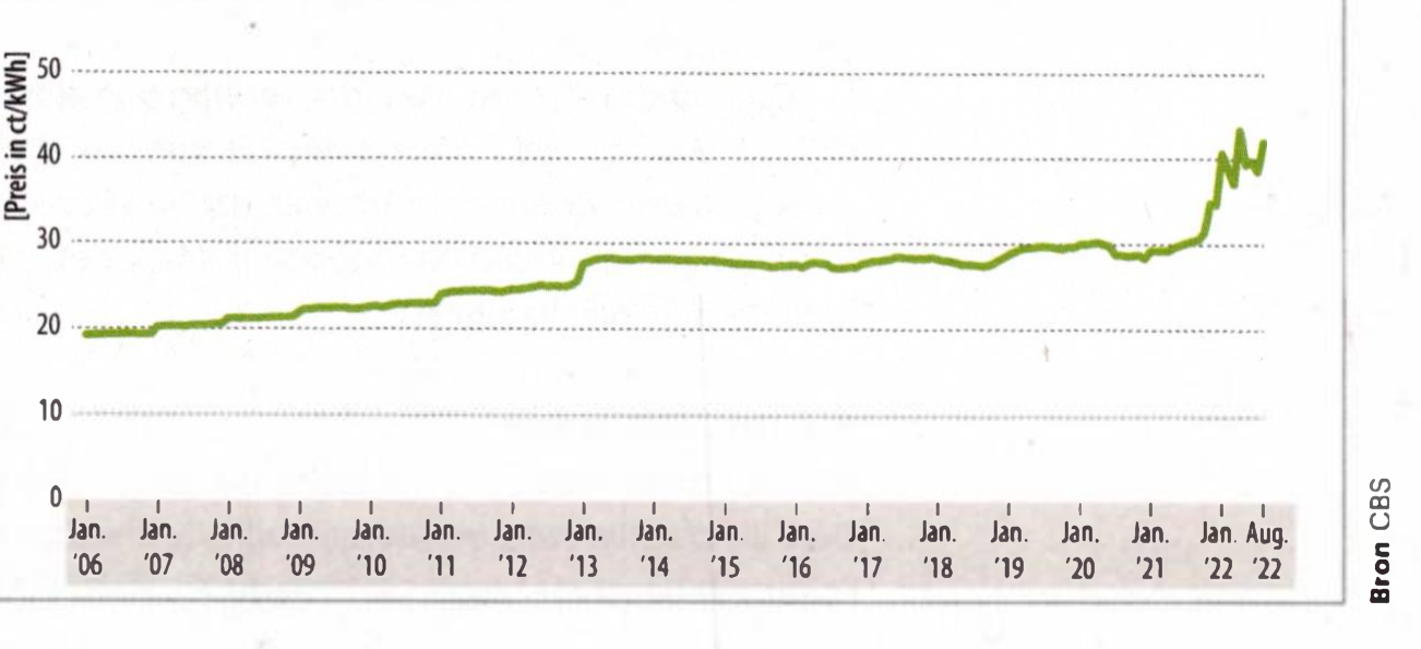 De gemiddelde prijs van gas en elektriciteit voor consumenten was lange tijd vrij constant. Na de Russische inval in de Oekraïne gingen beide explosief stijgen. Momenteel schommelt de prijs, maar zal naar verwachting hoog blijven.
